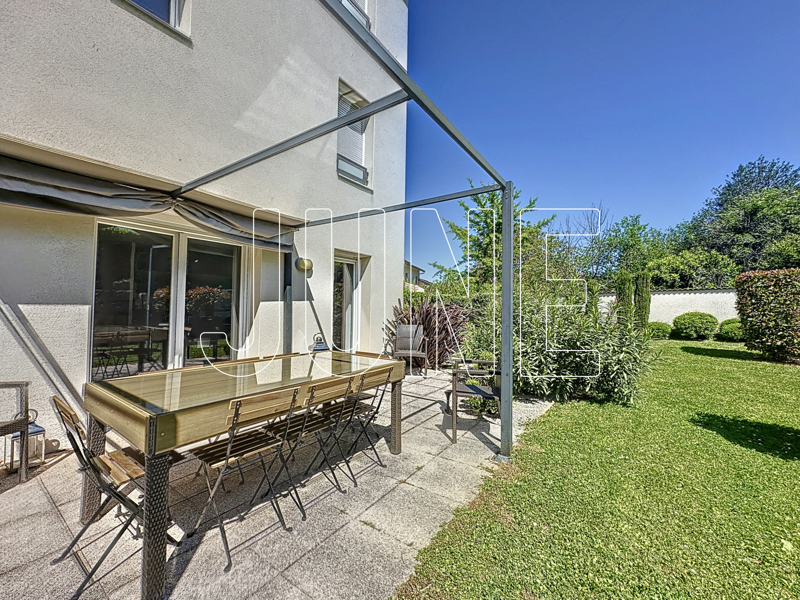 Découvrez en exclusivité avec JUNE IMMOBILIER, ce joyau immobilier niché au sein d'une résidence prisée, au cœur même du village. Cet appartement T3 récent de près de 70m2, d'une dizaine d'années seulement, incarne le parfait équilibre entre la petite maison et l'appartement. Situé en rez-de-jardin, il offre un bel espace de vie avec une pièce de vie baignée de lumière, s'ouvrant harmonieusement sur un vaste jardin privatif et paysagéde près de 270m2 orienté sud-est !!! Produit très rare sur le secteur ! Imaginez-vous profiter de moments de détente et de convivialité en plein air, dans cet écrin de verdure aux prestations exceptionnelles. Doté de deux belles chambres, ce bien est idéal pour ceux qui recherchent une oasis de tranquillité au cœur de l'animation du village. De plus, un garage et une place de parking vous assurent praticité et sécurité au quotidien. Avec un accès facile aux commodités du village, cet appartement offre un cadre de vie privilégié où tout est à portée de main. Et cerise sur le gâteau, aucun travaux à prévoir : il n'attend que vous pour y poser vos valises et commencer à savourer chaque instant. Contactez-nous dès aujourd'hui au 04 37 65 15 80 pour organiser une visite et laissez-vous séduire par le charme indéniable de cet appartement unique. JUNE IMMOBILIER - 3, route de Marennes 69970 Chaponnay Honoraires charges vendeurs - DPE en cours