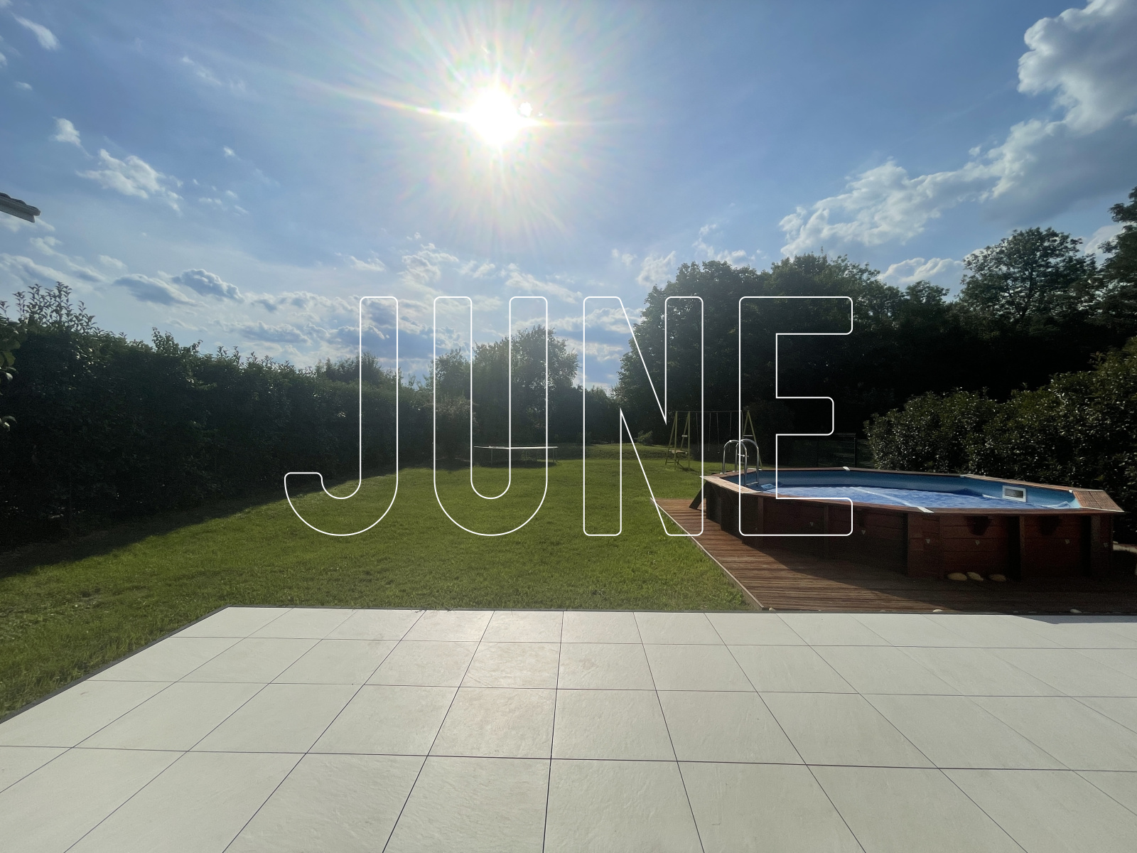 Côté extérieur, vous apprécierez ses 2 espaces jardins qui vous permettront de suivre le soleil ou l'ombre selon vos désirs, sa grande terrasse carrelée sur plots, sa piscine hors sol et sa vue sur la zone naturelle ...