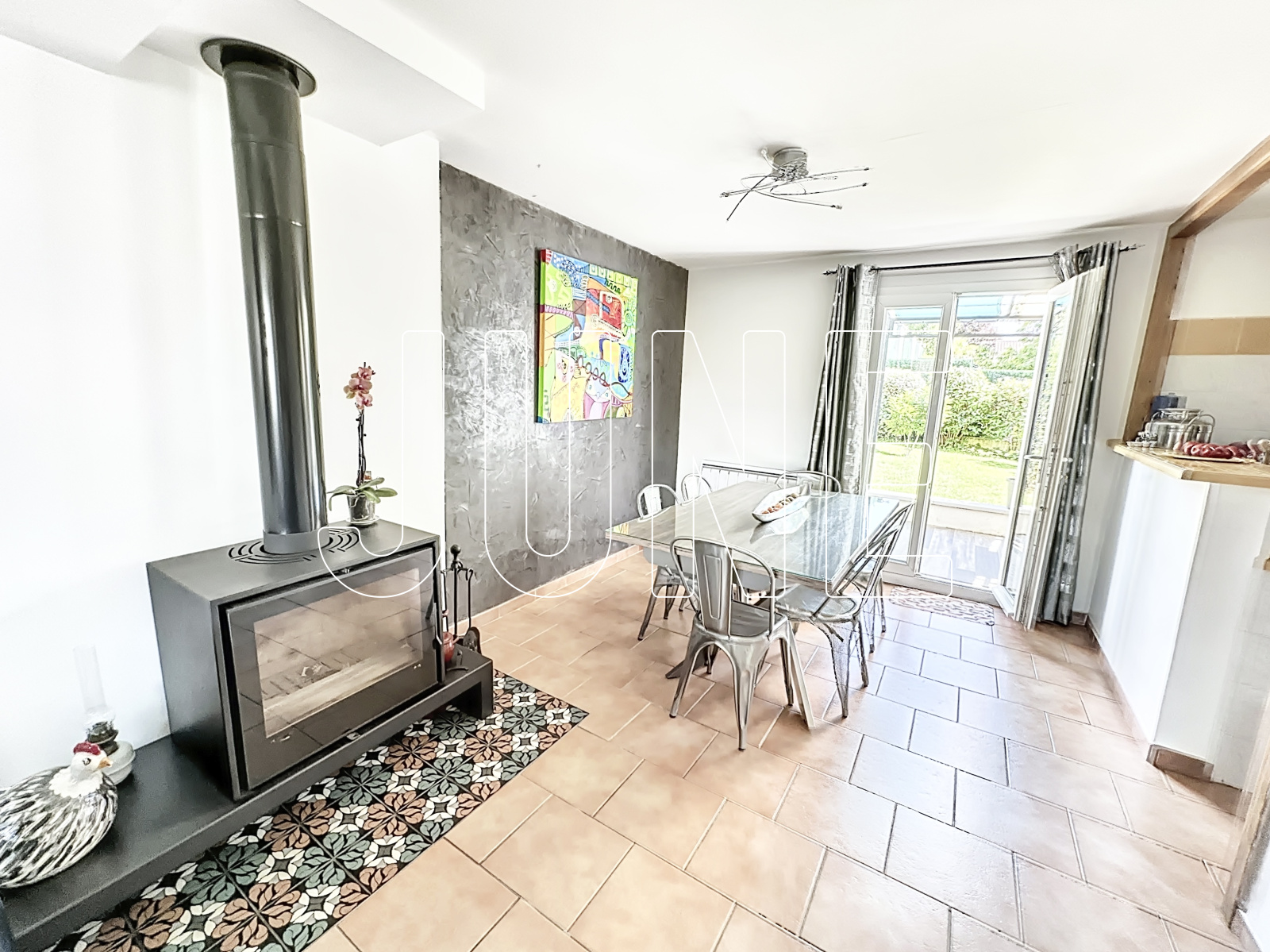 JUNE IMMOBILIER vous propose de découvrir en EXCLUSIVITÉ cette jolie maison familiale très bien entretenue de 85m2, mitoyenne, sur son terrain de 198m2 orienté Sud. Située dans un lotissement et copropriété au cœur du village de Chaponnay, dans un environnement très calme, cette maison saura vous séduire pour profiter entre amis et famille à l'abri des regards en profitant d'un jardin enchanteur et tout en étant proche des commodités (écoles, stade, commerces, maison médicale etc.) ! Au rez-de-chaussée, vous trouverez une grande pièce de vie/cuisine de 40m2 donnant sur une belle terrasse et le jardin, un WC vient compléter le bas de la maison. Cette pièce de vie lumineuse et traversante apportera chaleur et convivialité à votre espace de vie grâce à son poêle à bois. L’étage est composé de 3 chambres dont une avec un dressing, une salle d’eau de 4m2 et un WC. Vous trouverez également un garage de 18m2 env attenant, pouvant se transformer en surface habitable. Pour tout renseignement complémentaire, contactez-nous au 04 37 65 15 80. Agence June Immobilier - 3, route de Marennes 69970 Chaponnay - DPE D - Honoraires charge vendeurs
