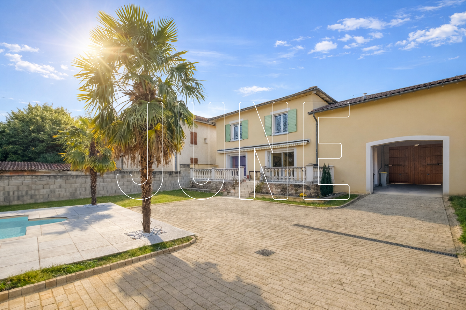 Au cœur du village de Chaponnay, découvrez avec JUNE cette authentique bâtisse de caractère en pisé de 193 m² sur une belle parcelle arborée de 1165 m².
