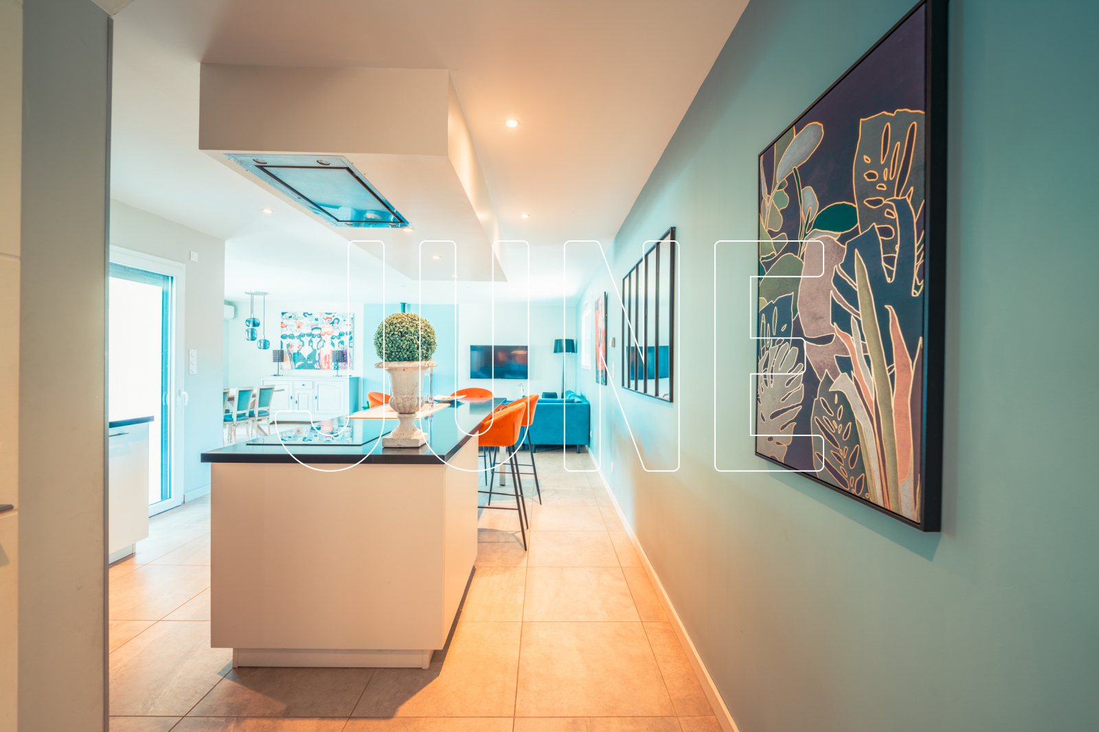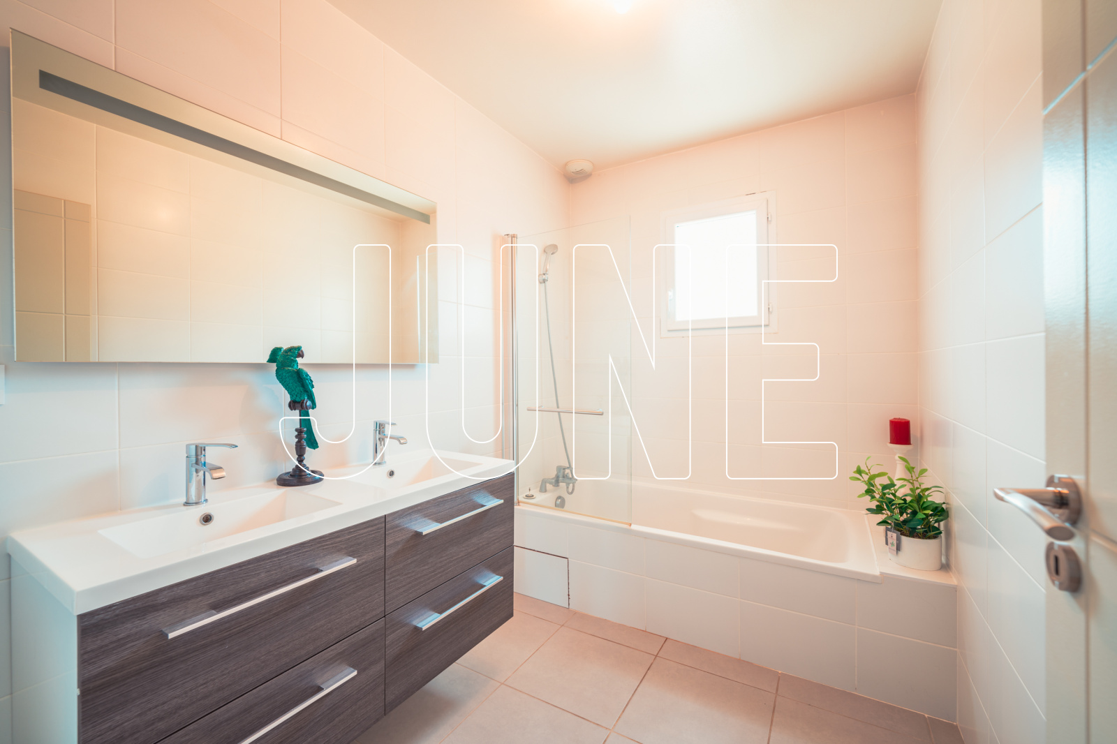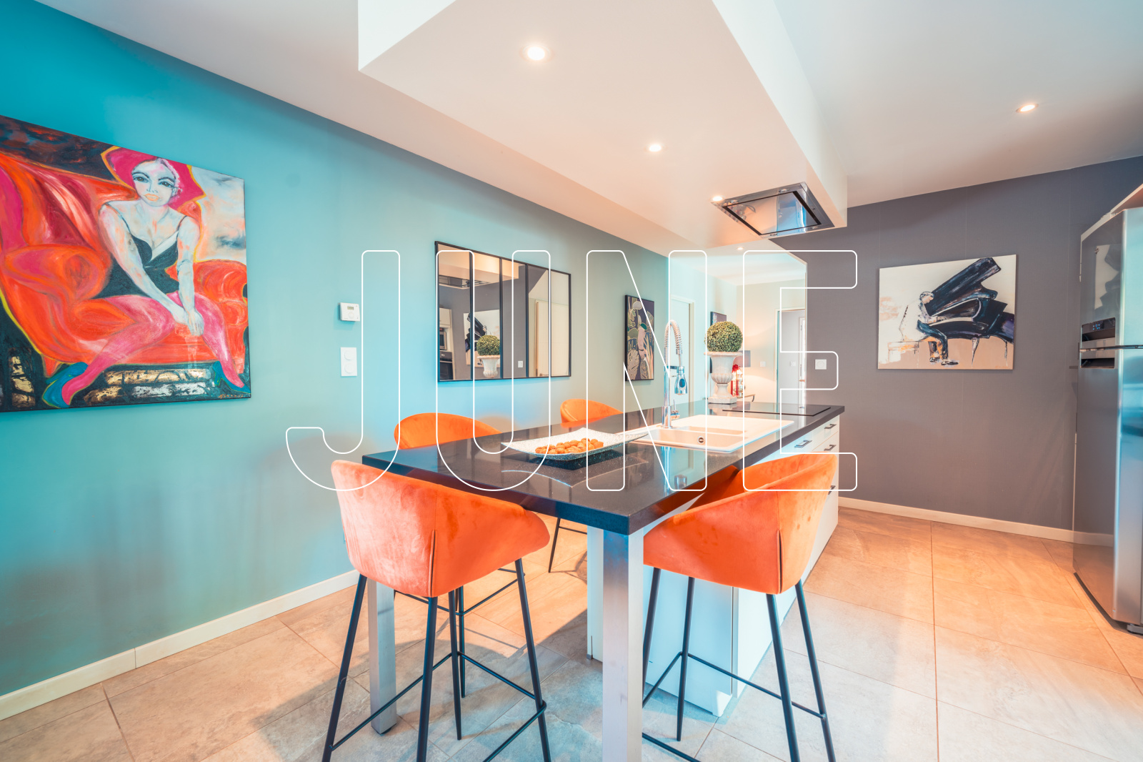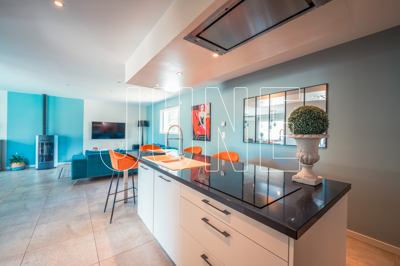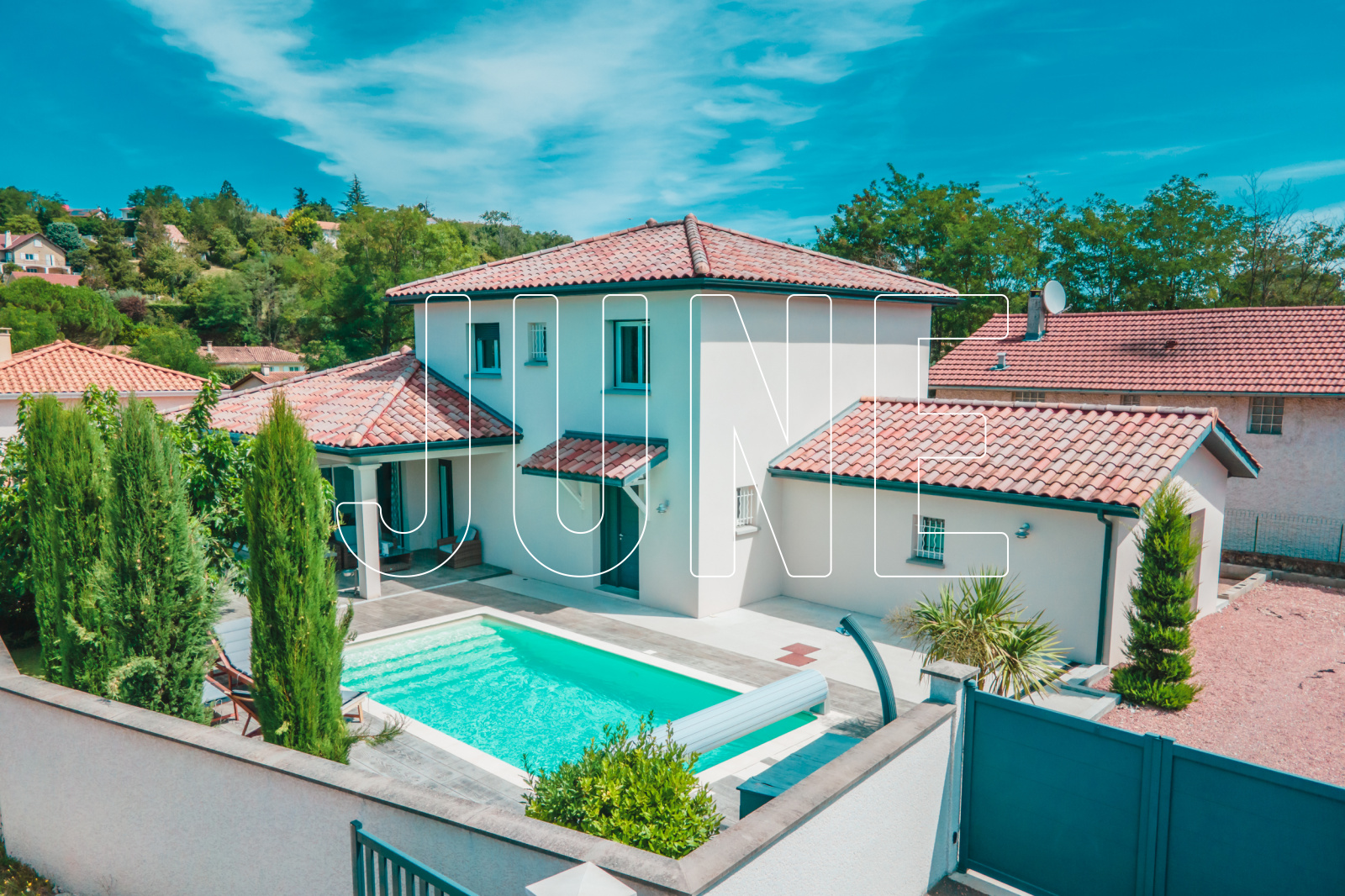 JUNE IMMOBILIER vous présente en exclusivité ce petit bijou de maison de 140m2 env située proche du centre du village prisé de Chaponnay. Avec sa contruction récente de 2015, vous serez séduits par ses lignes contemporaines et ses prestations soignées... Vous vouliez pouvoir vous installer rapidement dans une maison sans travaux quasi neuve ? Elle est faite pour vous ! Sa parcelle quasi plate de 760m2 permet d'accueillir une piscine, un grand espace terrasse, une grande cour pour le stationnement, un cabanon et un terrain de pétanque ! Tout y est ! Côté intérieur, vous aurez accès au rez-de-chaussée à une belle pièce de vie de plus de 50m2 orienté OUEST, une grande chambre parentale de 24m2, un cellier et un WC. A l'étage, 4 autres chambres et une salle de bain + WC. Vous apprécierez un grand garage attenant isolé et carrelé de 29m2 accessible par le cellier. Côté système de chauffage/refroidissement : pour le rdc chauffage au sol AIR/EAU + climatisation + poele à granules et à l'étage gainable AIR/AIR + radiateurs AIR/EAU Côté matériaux de construction/prestations : murs en aggloméré de 20cm, vide sanitaire, enduit finition grattée, menuiseries PVC et ALU avec volets roulants électriques et centralisés, visophone, portail et porte de garage motorisés, pergola bio-climatique, piscine chauffée MAGILINE de 2018 avec volet roulant immergé... Si vous souhaiter programmer une visite, contactez Delphine VITTI au 06 51 87 02 04 ou 04 37 65 15 80. Honoraires charge vendeurs - DPE B JUNE IMMOBILIER - 3, route de Marennes 69970 Chaponnay