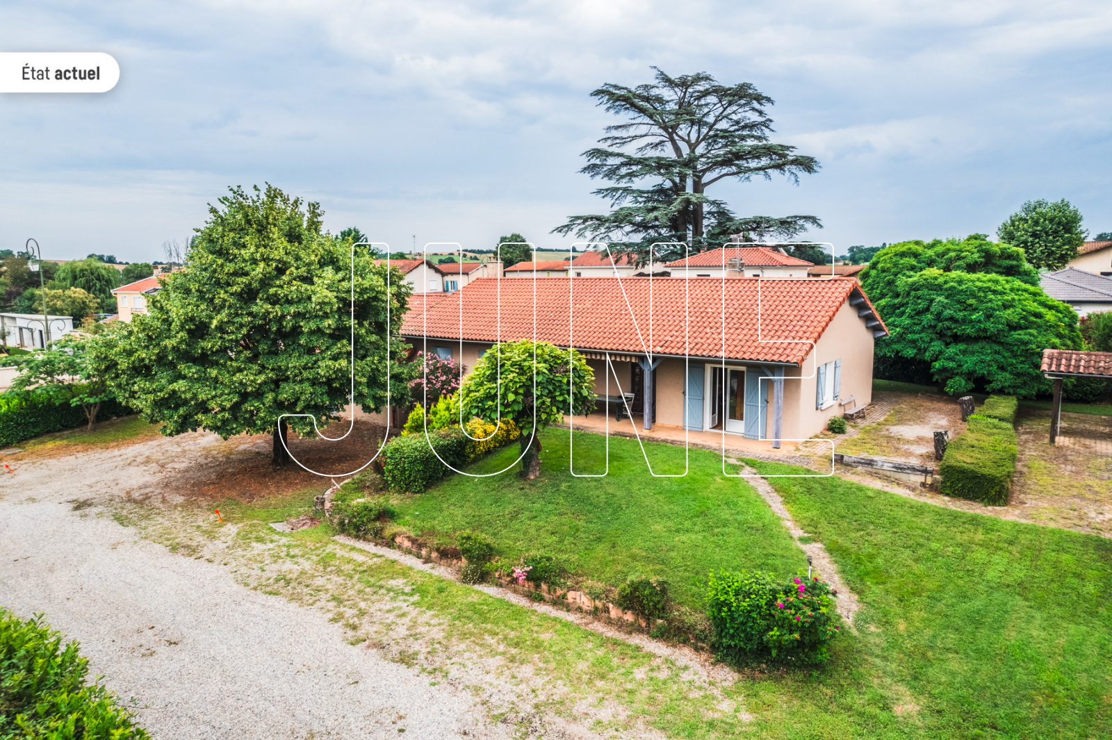 JUNE IMMOBILIER est ravie de vous présenter en exclusivité cette maison édifiée sur un terrain de 1250m² piscinable au centre du village de Chaponnay.