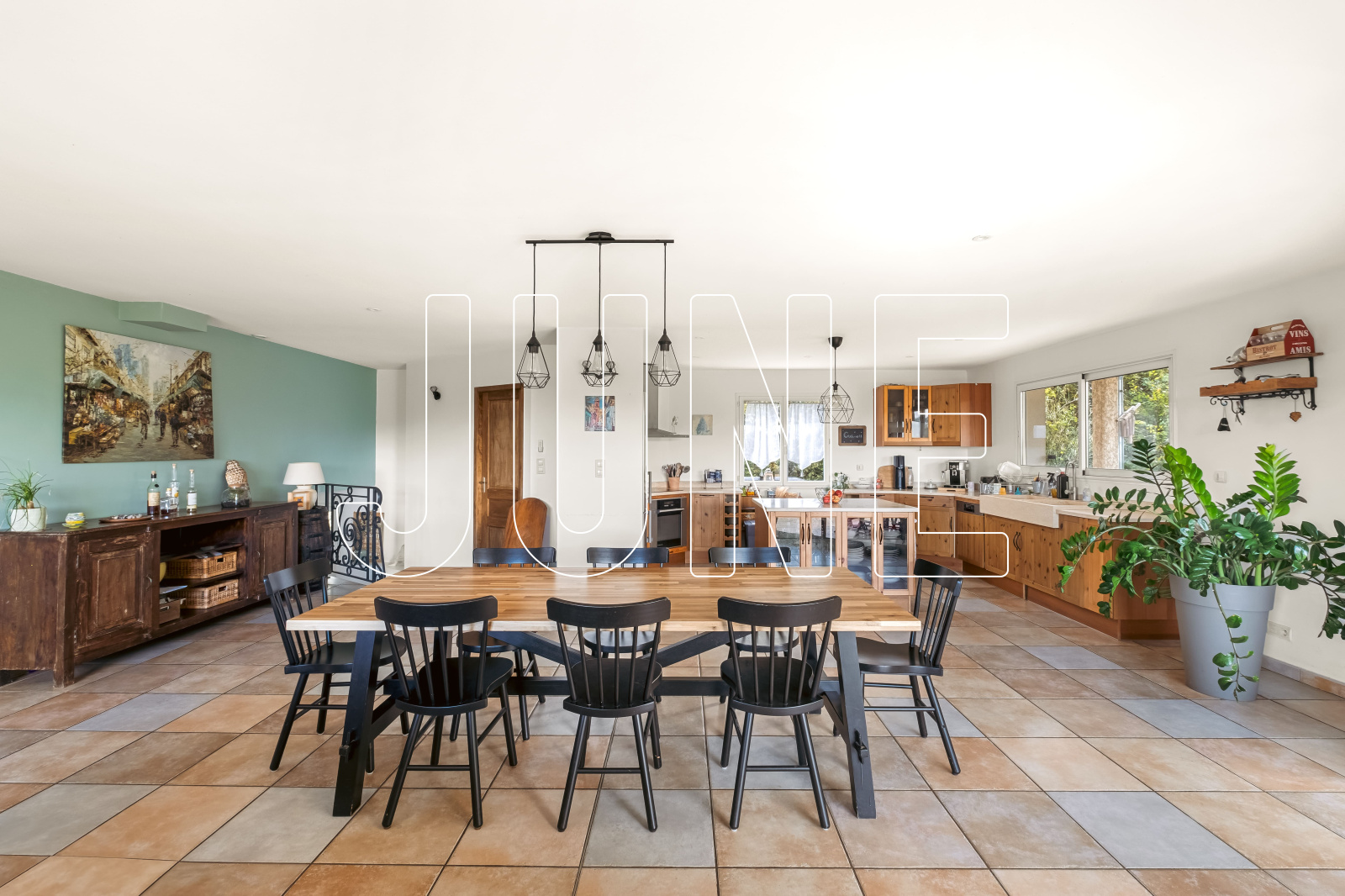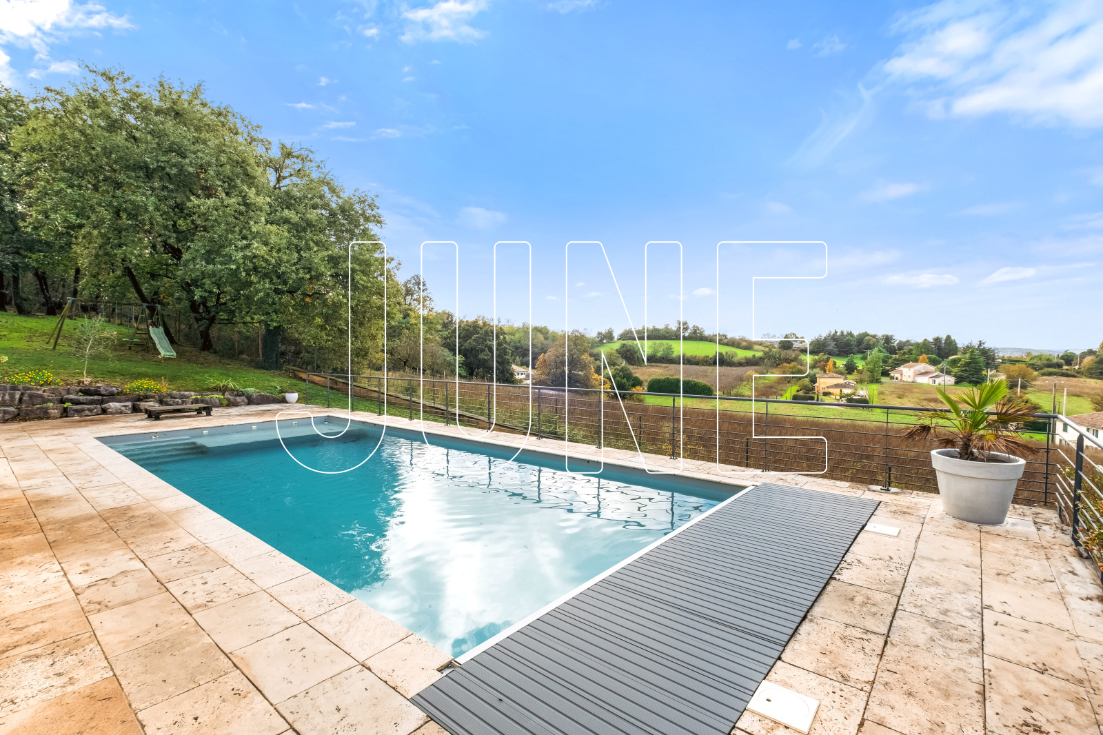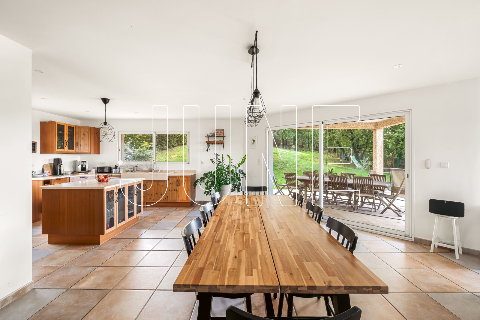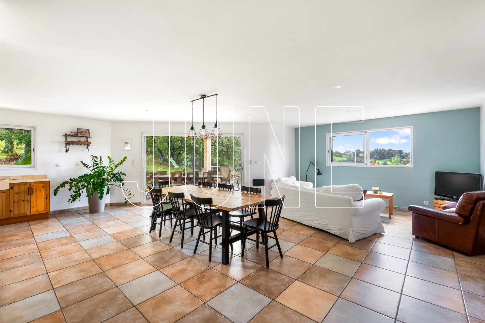 À l’extérieur, une piscine et un vaste jardin dégagé renforcent ce sentiment de tranquillité et d’évasion. Vous pourrez pleinement profiter du cadre idyllique et d’une grande parcelle de plus de 3000m2, parfaite pour se ressourcer au quotidien.
