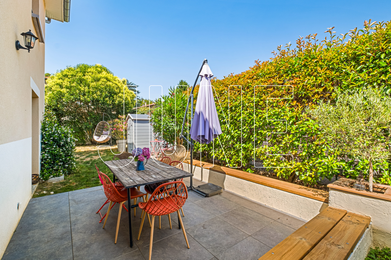 Côté extérieur, vous serez séduits par le jardin privatif exposé Est, d’environ 94 m², avec une belle terrasse ainsi qu’une cabane de jardin.