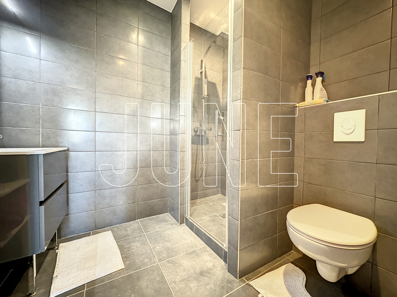 Au rez-de-chaussée, vous trouverez un salon/séjour/cuisine de plus de 23m2 exposé plein Sud donnant directement sur la terrasse et le jardin ainsi qu'un WC. À l’étage, une chambre spacieuse de 14,5m2 (avec un coin dressing et/ou bureau selon vos besoins) baignée de lumière et une très belle salle d’eau avec un deuxième WC.