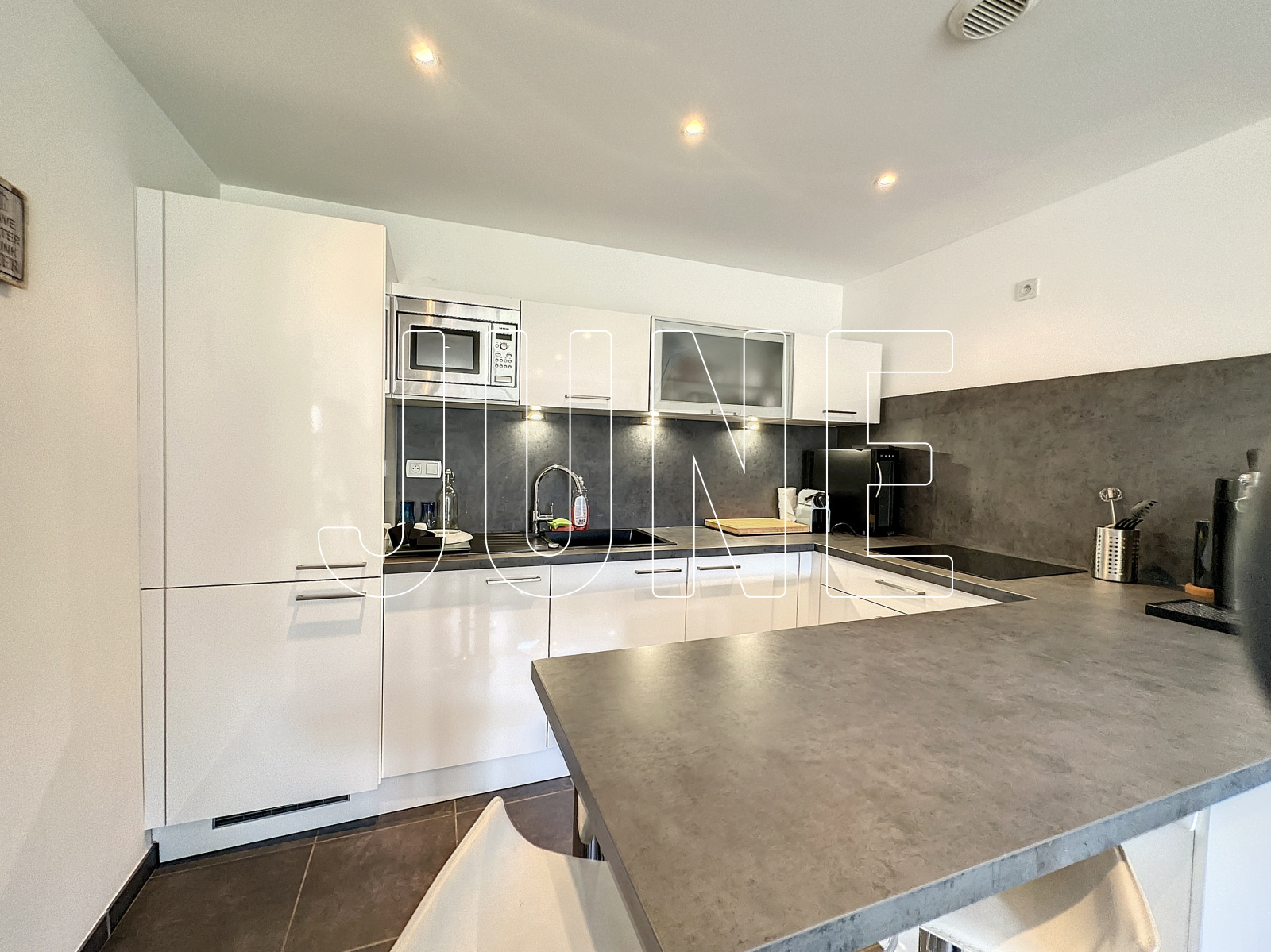 L’appartement est équipé de volets roulants électriques, menuiseries en PVC et d’une cuisine américaine.