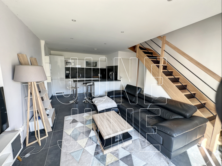 JUNE IMMOBILIER vous présente en exclusivité ce spacieux T2 bis en duplex avec jardinet privatif au sein d’une petite copropriété de 2015 sur la commune de Marennes.