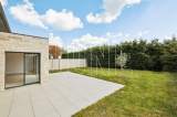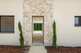 La construction, réalisée en blocs de béton isolant, allie performance et durabilité. Les menuiseries en PVC gris anthracite (RAL 7016) et l'avancée en toit plat oulignent le style contemporain de la maison.