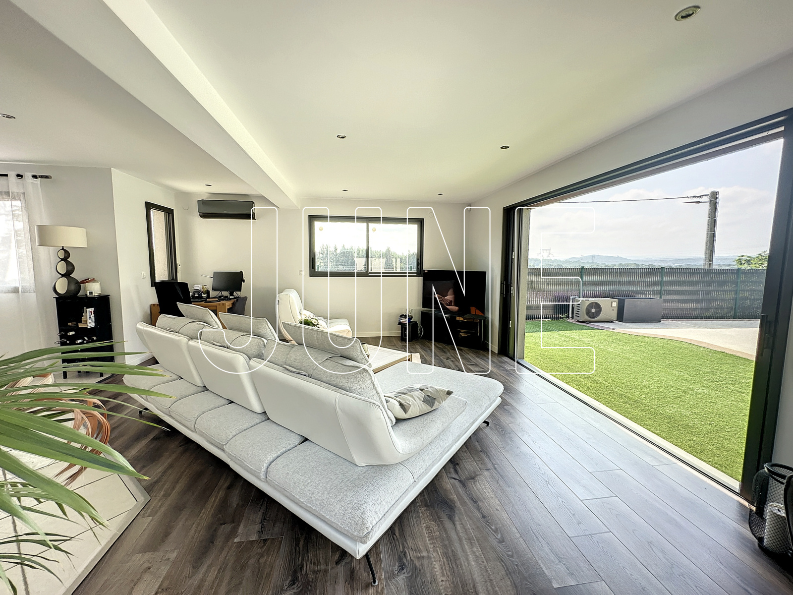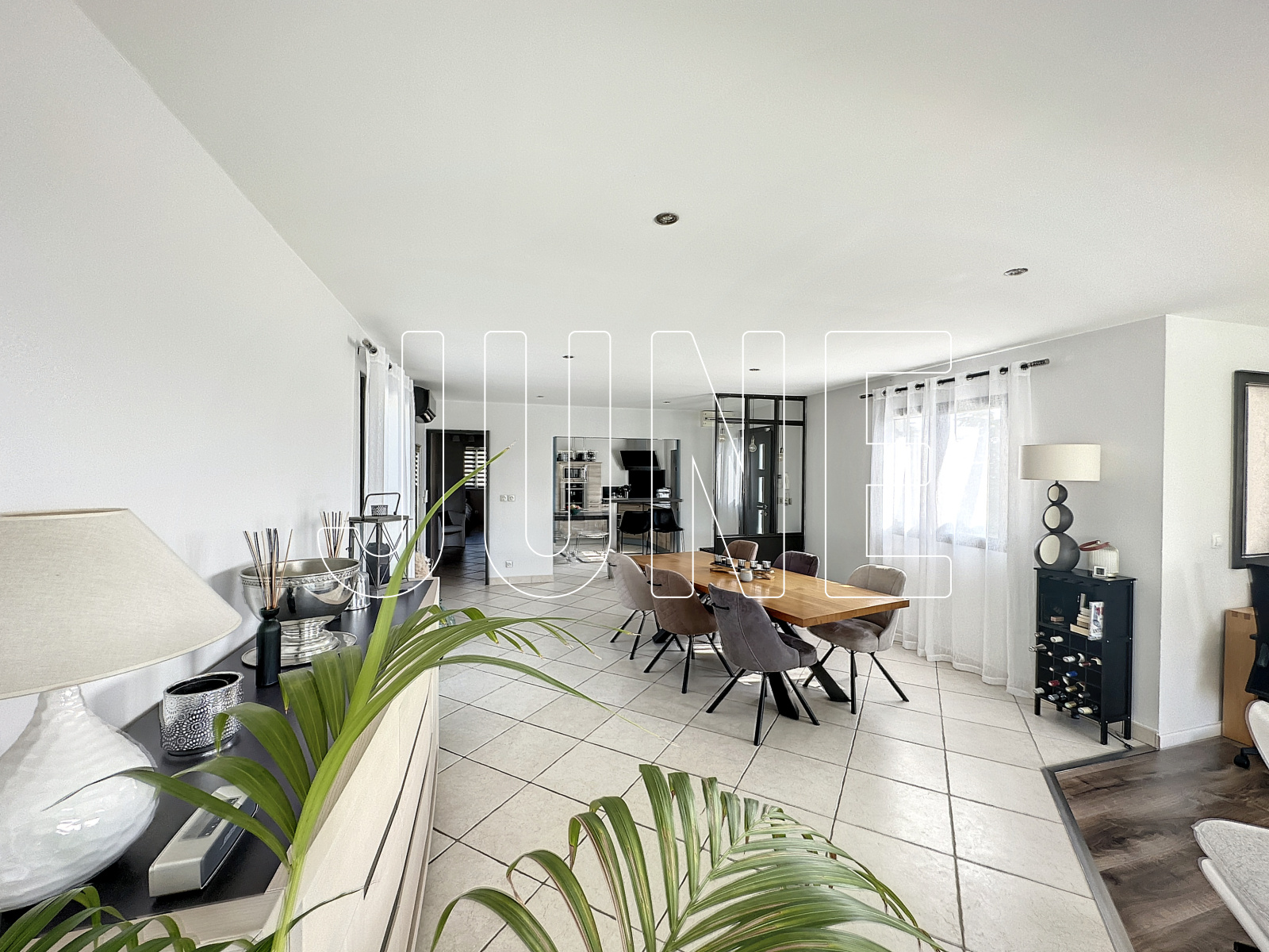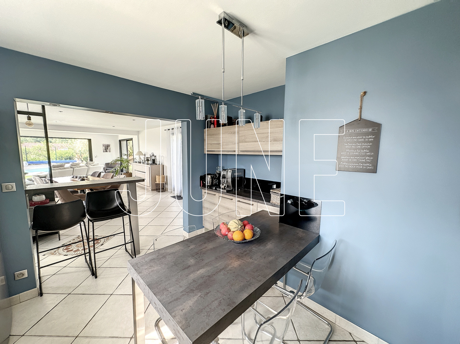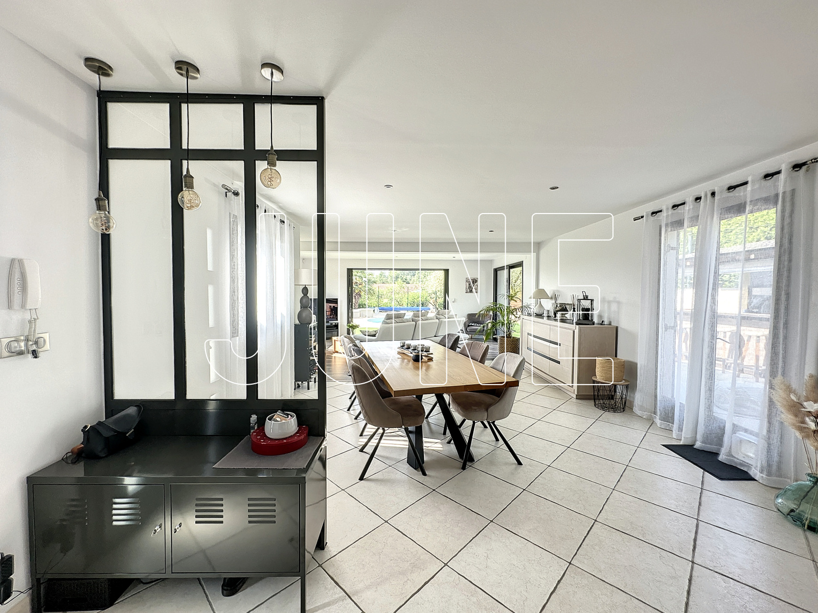 Sa pièce de vie de plus de 66 m2 ne vous laissera pas insensible, avec sa baie à galandage vous invitant à découvrir l'extérieur...Jardin paysagé notamment avec un sublime olivier, piscine chauffée, espace bar...