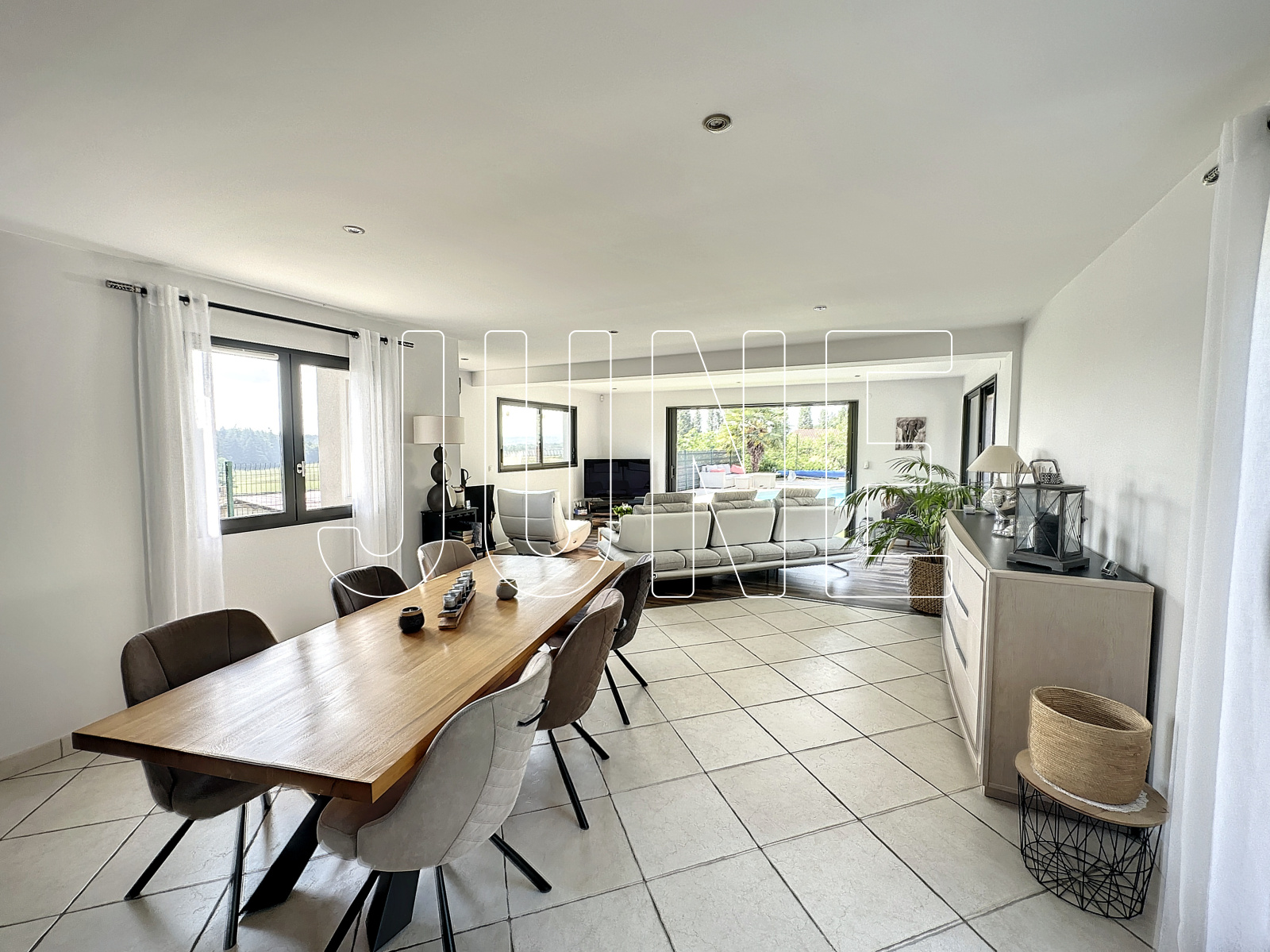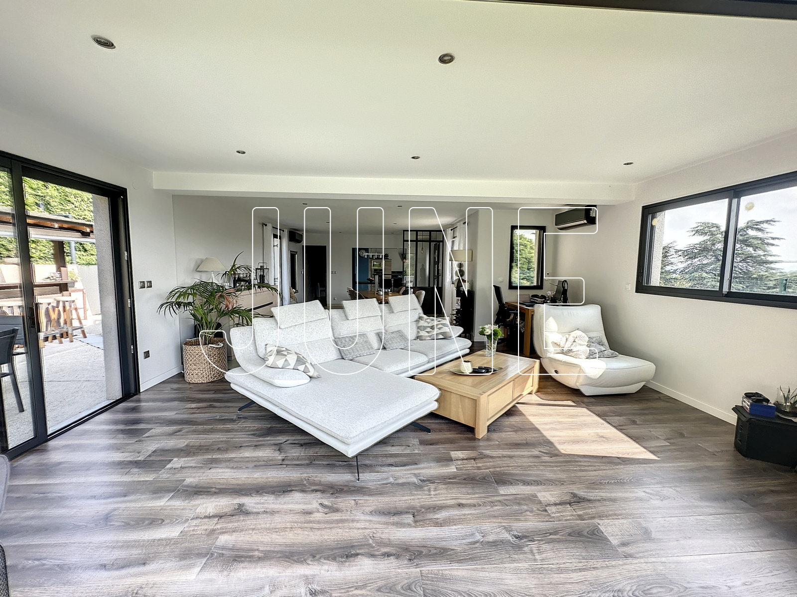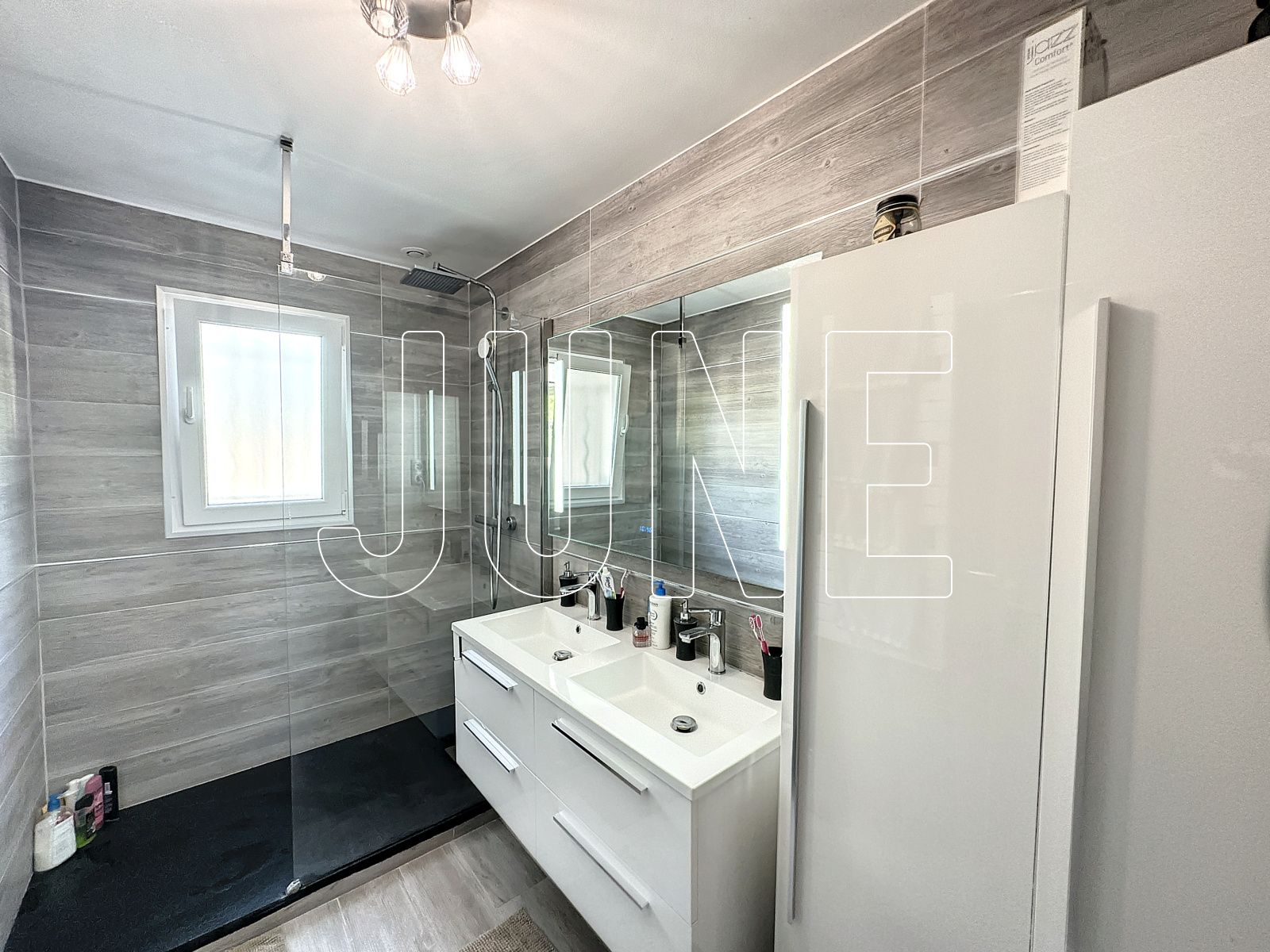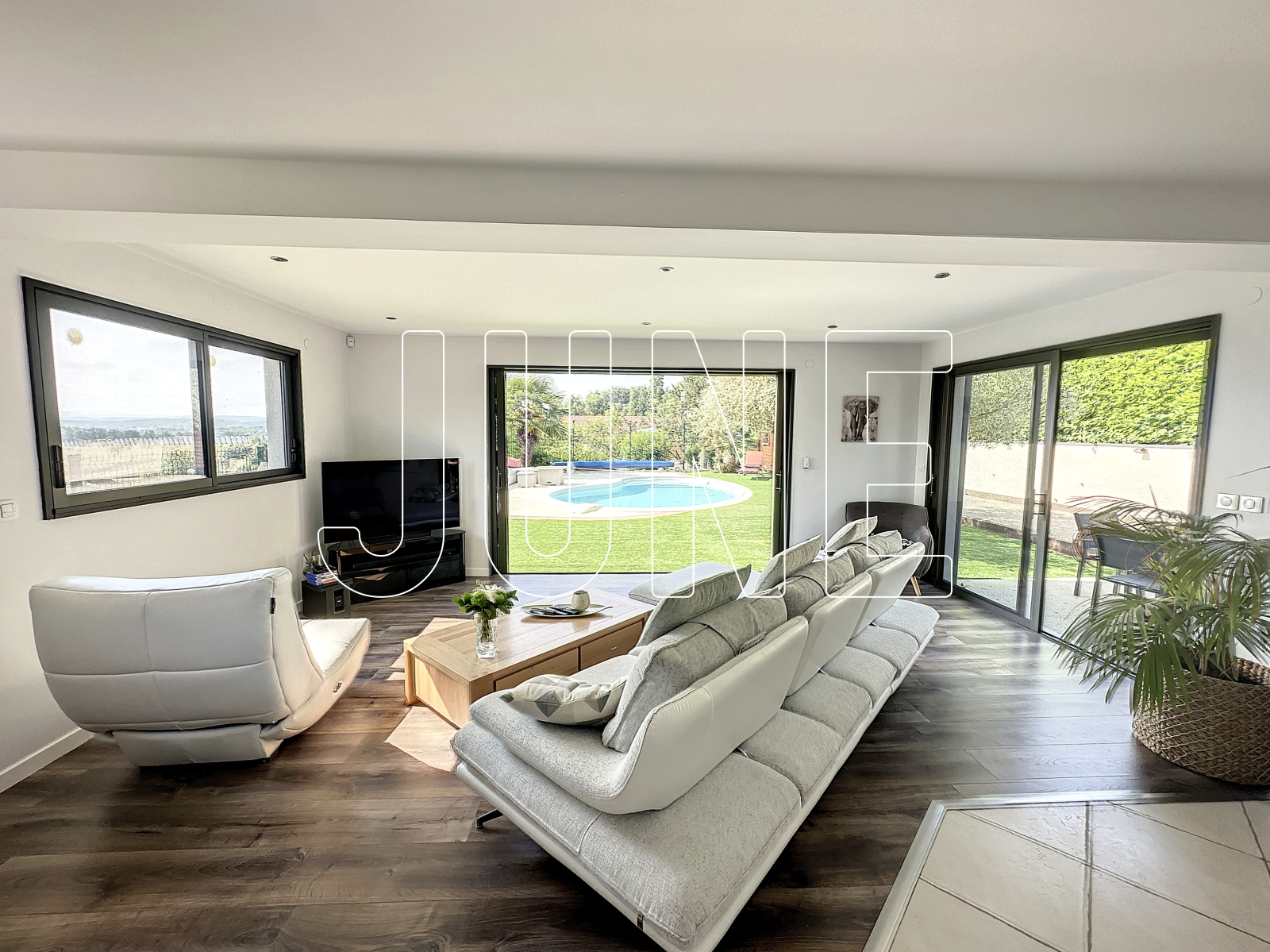 Sa pièce de vie de plus de 66 m2 ne vous laissera pas insensible, avec sa baie à galandage vous invitant à découvrir l'extérieur...Jardin paysagé notamment avec un sublime olivier, piscine chauffée, espace bar...