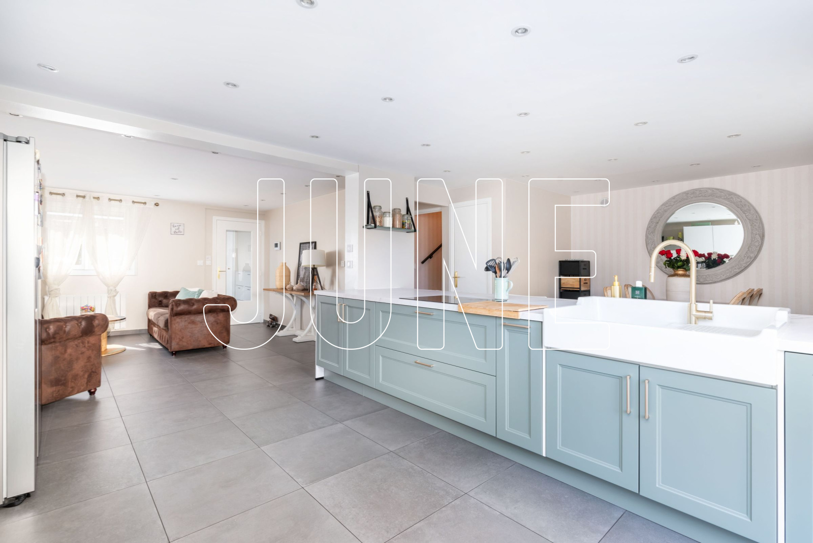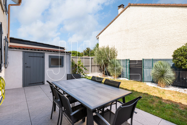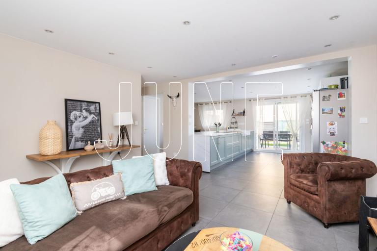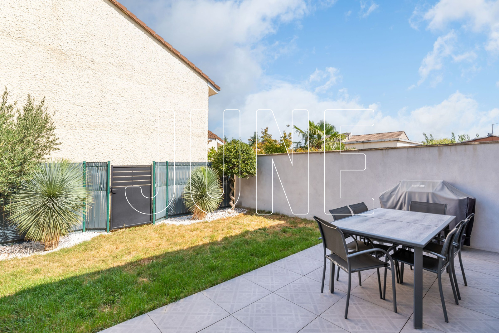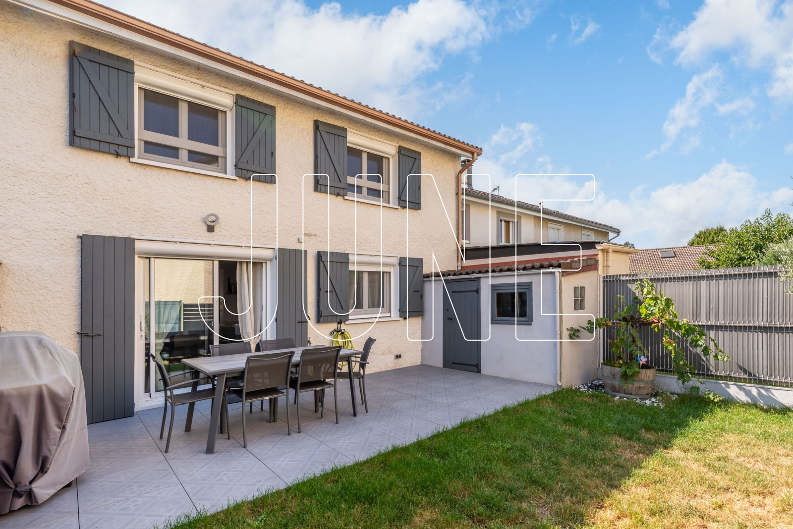 JUNE IMMOBILIER est ravie de vous présenter en exclusivité cette jolie maison entièrement rénovée avec goût, édifiée sur une parcelle de 191m². Ce terrain joliment arboré permet d’accueillir un stationnement pour vos deux véhicules ainsi qu’un beau jardin avec sa terrasse carrelée et un abri de jardin. Dès l’entrée, vous serez séduit par sa grande pièce de vie de près de 43m2 avec sa belle cuisine ouverte entièrement équipée et son coin repas. Au rez-de-chaussée, vous trouverez également un WC et un garage avec coin buanderie. À l'étage, vous découvrirez trois belles chambres, une salle de bain moderne avec douche et baignoire, ainsi qu'un second WC. Côté prestations : portail et porte de garage motorisés, visiophone, volets roulants électriques avec moustiquaires, menuiseries PVC, Fibre. Pour tous renseignements complémentaires, contactez-nous au 04 37 65 15 80. Agence June Immobilier - 3, route de Marennes, 69970 Chaponnay - DPE D - Honoraires à la charge du vendeur.