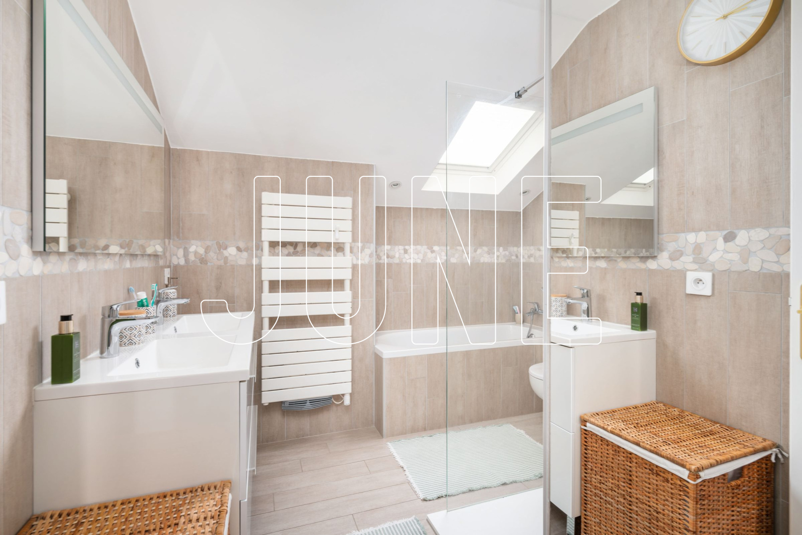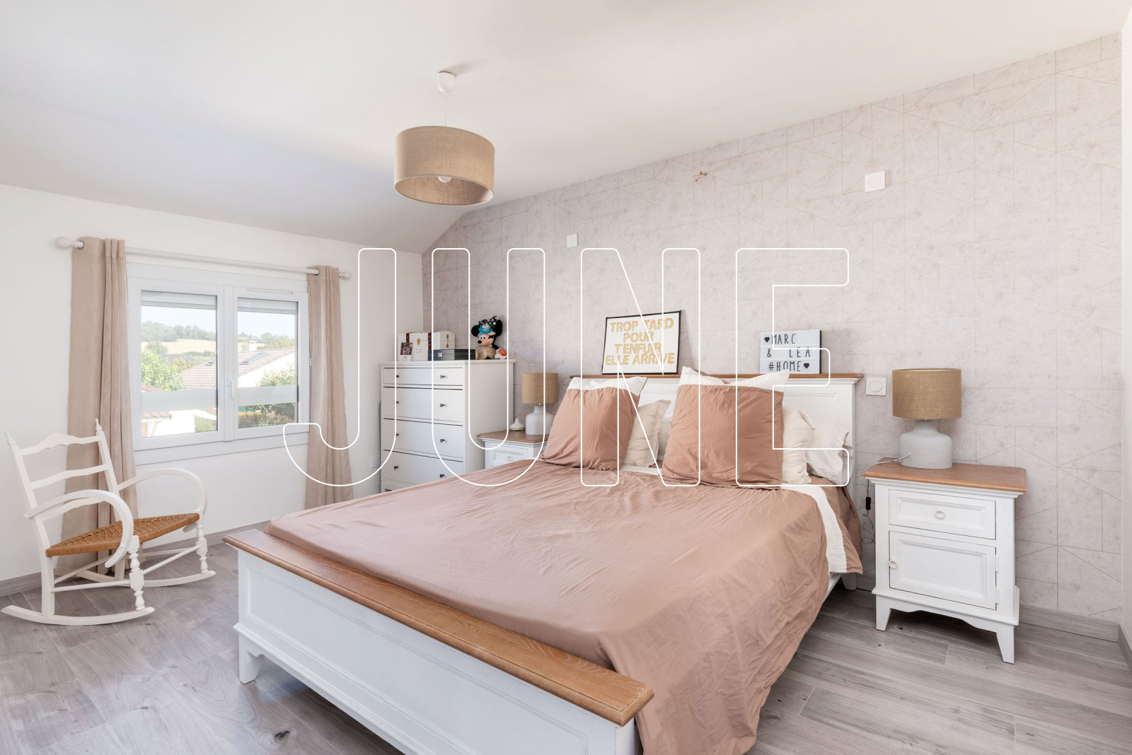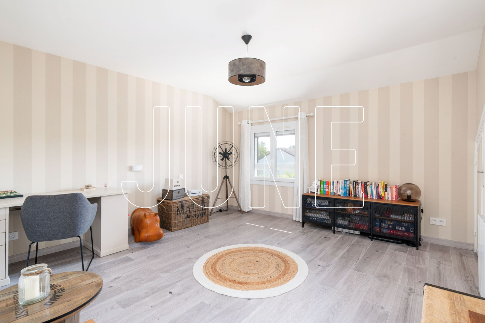 JUNE IMMOBILIER est ravie de vous présenter en exclusivité cette jolie maison entièrement rénovée avec goût, édifiée sur une parcelle de 191m². Ce terrain joliment arboré permet d’accueillir un stationnement pour vos deux véhicules ainsi qu’un beau jardin avec sa terrasse carrelée et un abri de jardin. Dès l’entrée, vous serez séduit par sa grande pièce de vie de près de 43m2 avec sa belle cuisine ouverte entièrement équipée et son coin repas. Au rez-de-chaussée, vous trouverez également un WC et un garage avec coin buanderie. À l'étage, vous découvrirez trois belles chambres, une salle de bain moderne avec douche et baignoire, ainsi qu'un second WC. Côté prestations : portail et porte de garage motorisés, visiophone, volets roulants électriques avec moustiquaires, menuiseries PVC, Fibre. Pour tous renseignements complémentaires, contactez-nous au 04 37 65 15 80. Agence June Immobilier - 3, route de Marennes, 69970 Chaponnay - DPE D - Honoraires à la charge du vendeur.
