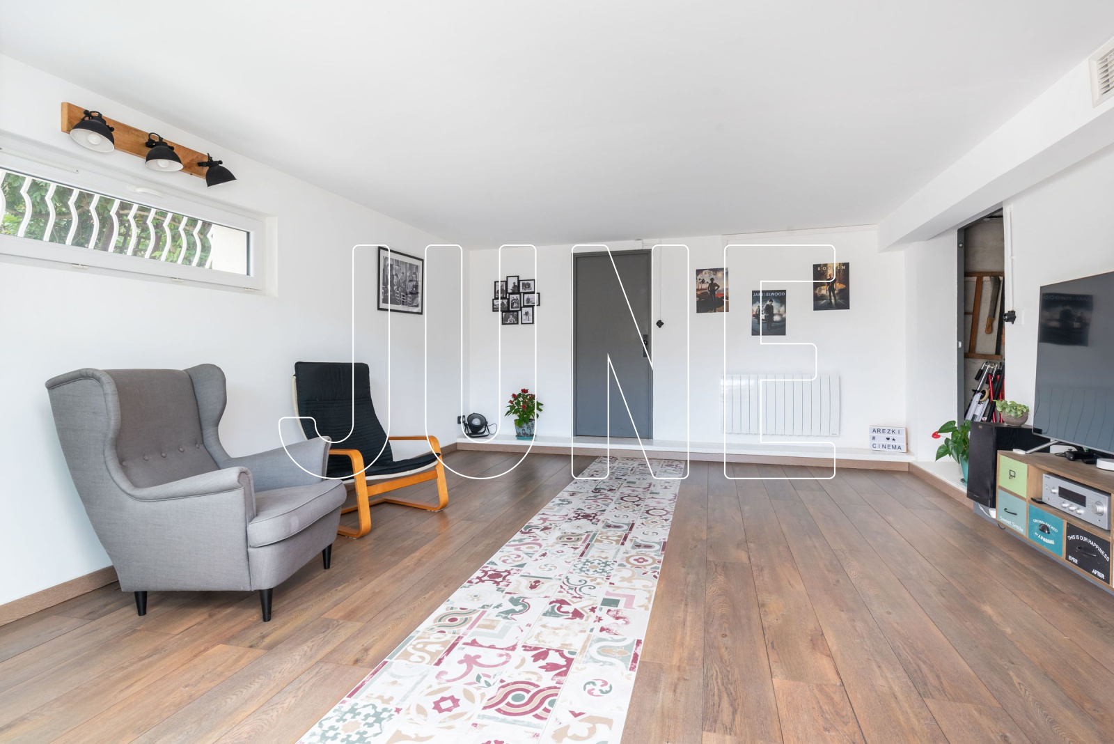 Au rez-de-chaussée, une pièce lumineuse de 24 m² vous accueille, ouvrant sur une belle terrasse plein sud de 22 m², idéale pour vos moments de détente en plein air en famille ou entre amis. Ce niveau comprend également une spacieuse buanderie et espace bureau avec de nombreux rangements, un atelier de 21 m², un WC et un local technique.
