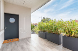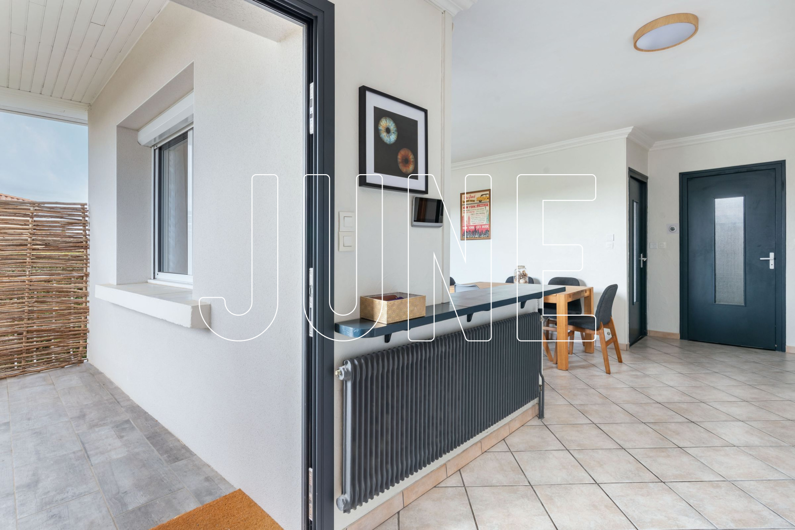 À l'étage, laissez-vous séduire par une entrée ouvrant sur un salon et une cuisine équipée séparée. Ce niveau comprend également trois chambres confortables et une salle d'eau moderne avec WC. Une terrasse couverte de 12 m² vous permet de profiter de l'extérieur tout en étant à l'abri.