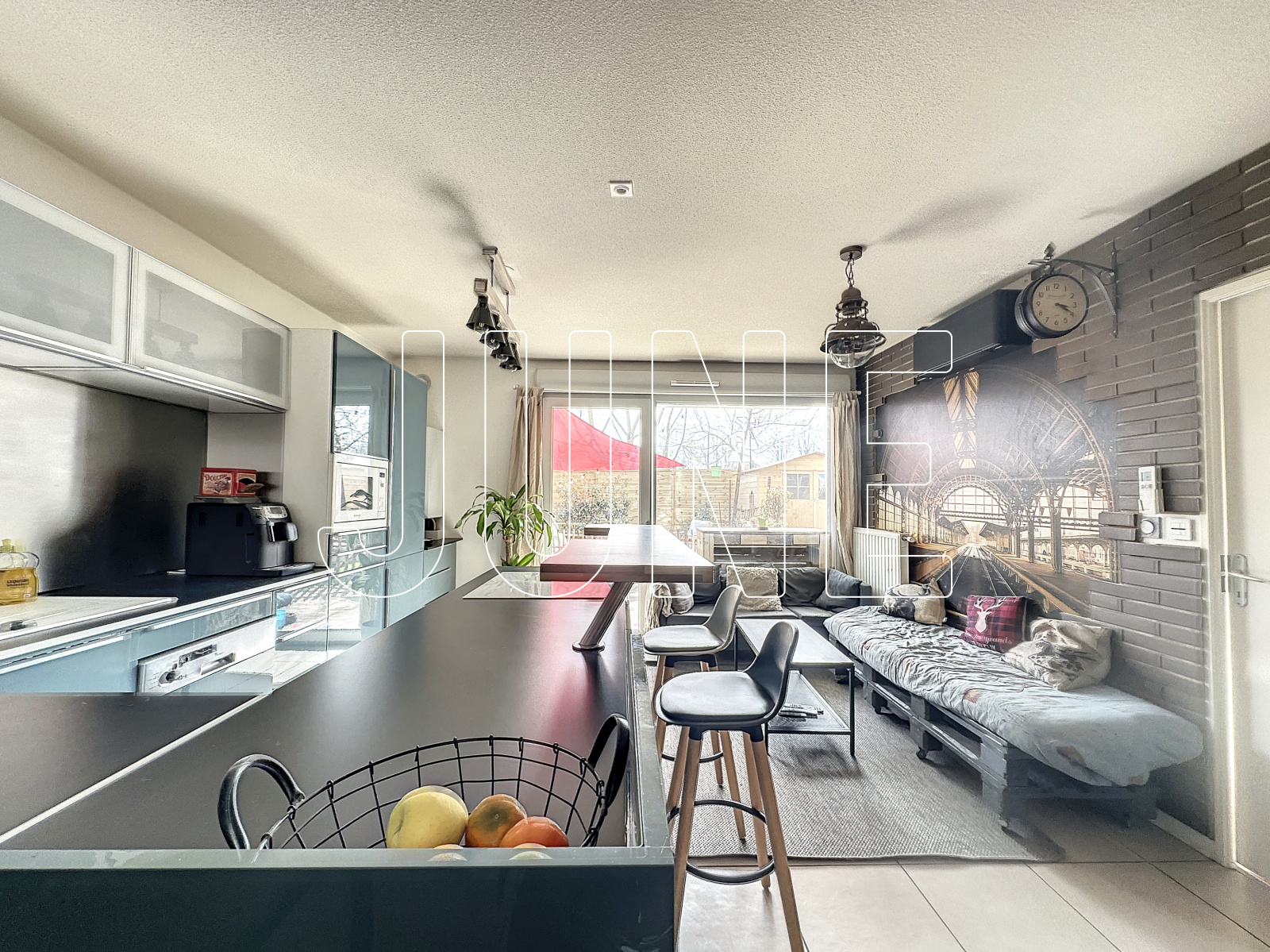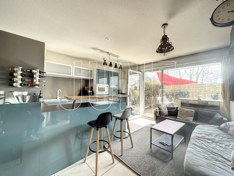 Il se compose d'un cuisine ouverte sur la pièce de vie (22 m2 env) donnant accès à la terrasse et au jardin privatifs exposés Est, d'une chambre (11 m2 env) avec placard mural et espace bureau, d'une salle d'eau avec espace buanderie et d'un WC séparé. Une place de stationnement privative en sous-sol complète ce bien.