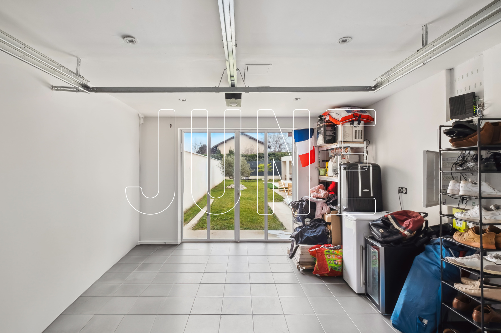 Vous trouverez également un garage de 20 m2, carrelé et isolé avec une porte fenêtre donnant directement accès au jardin, ce garage pouvant se transformer facilement en 4 ème chambre ou bureau si besoin.