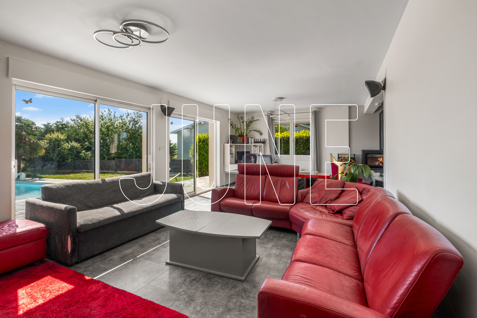 Sur un terrain de 1 200 m², cette maison familiale offre une surface habitable optimisée et bien pensée, avec un grand séjour d'environ 47 m² baigné de lumière, ouvert sur une cuisine conviviale complétement équipée et également sur un salon d'environ 30 m² avec un poêle grand foyer pour une ambiance douce et agréable en hiver soit environ 76 m² de pièce de vie.
