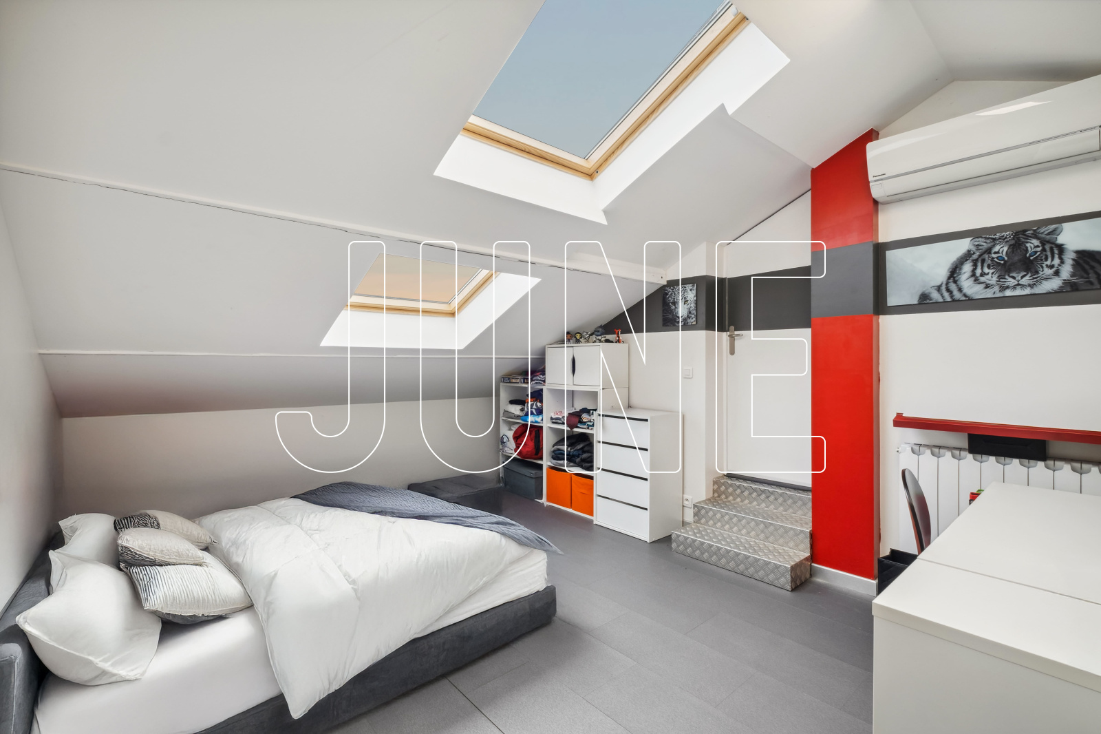 À l’étage, quatre chambres dont une avec sa propre salle d’eau et son espace rangement, ainsi qu’une seconde salle d’eau indépendante pour le confort de tous. Ces chambres mansardées, très lumineuses grâce aux fenêtres velux, apportent une atmosphère cocooning tout en bénéciant d'une belle surface au sol.